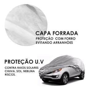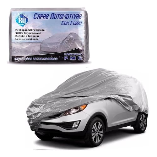 Capa De Carro Alto Suv Big P Impermeável Com Forro Central Cinza Pequena Capa automotiva com forro tamanho big p - 1.4x4,5 mts Desenvolvidos para carros de veículos até 4,5 metros de comprimento. Medidas: Largura: 1.4 metros Altura: 1.4 cm podendo variar conforme a largura do veículo Comprimento: 4,5 metros Compatível: Caso não saiba o comprimento pode comparar com os seguintes modelos: - chevrolet tracker - chevrolet meriva - citroen xsara picasso - volkswagem crossfox - kia sportage - hyundai tucson - hyundai ix35 - ford ecosport - renault scenic - fiat idea - jeep renegade Como colocar sua capa: 1 - coloque a capa com o carro limpo, seco e frio com antenas e acessórios recolhidos. Ao desembalar a capa desenrole no sentido do comprimento, a etiqueta vai ficar localizada na frente do veículo, e a arte interna da capa fica voltada para baixo 2 - centralize e desfaça as dobras ao longo das laterais, até cobrir os retrovisores, puxe-a para barra eté envolver o para-choque dianteiro. 3 - faça o mesmo co o para-choque traseira. Finalize a operação ajustando sua descida nas laterais e centralizando-a. Especificações técnicas: - desenvolvidos para carros de grande comprimento e largura, porém não muita altura. - fabricadas em polietileno trançado peva - proteção u.V reflete luz solar - proteção com forro interna apena na parte central de polipropileno anti-risco - sistema interno de ventilação, o ar circula embaixo da capa evitando umidade. - anti-mofo - leve e resistente Manutenção e cuidados especiais estão impressos na etiqueta fixada na parte interna da capa. Atenção: a capa não poderá ser Utilizado quando: a pintura do veículo apresentar falta de brilho, falta de verniz, manchas e fundo aparente. Caso a pintura se encontrem qualquer destas condições citadas poderá provocar manchas esbranquiçadas em quase 100% do veículo. Obs: o fabricante se isenta de qualquer ônus se o usuário descumprir estas orientações. Atenção - 3 meses A empresa não se responsabiliza pela má instalação do produto. Procure por um profissional especializado Marca: Não Informado