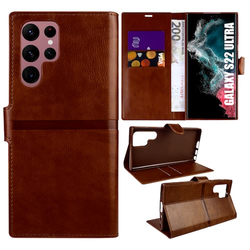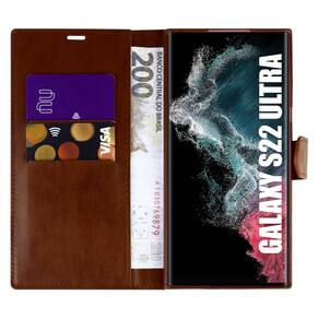 Capa Carteira Marrom + Película De CERÂMICA + Pl Câmera P/ Galaxy S22 Ultra S908 - Cell in Power25