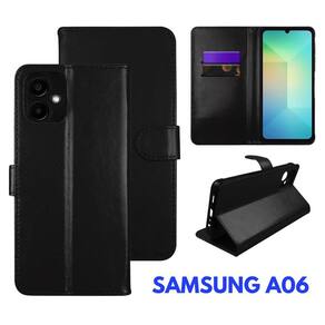 Capa carteira + película de vidro 3d compatível samsung a06 Cor: preto Bem-vindo à nossa loja