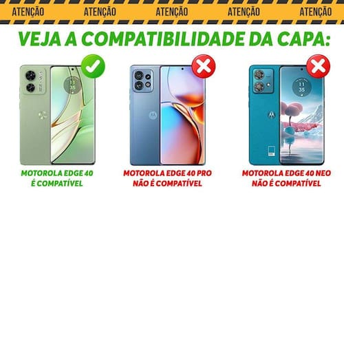 1. Essa capa é compatível com o Motorola Moto Edge 40? Sim, essa capa é compatível apenas com o Motorola Moto Edge 40.