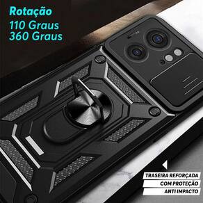 4. Essa capa possui algum diferencial? Sim, essa capa possui um relevo na parte que protege a câmera, um anel de dedo e metal embutido para aderir em imã, além de um slide cover para maior proteção das câmeras e privacidade.