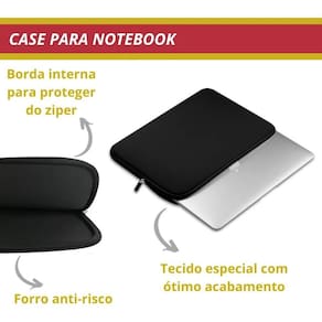 A capa case é feita em neoprene de alta qualidade reforçado. Impede que seu Notebook ou MacBook tenha desgastes no dia a dia, é resistente a arranhões e o principal, é à prova de choque devido seu material ter um bom amortecimento Ainda, possui toque suave e confortável.