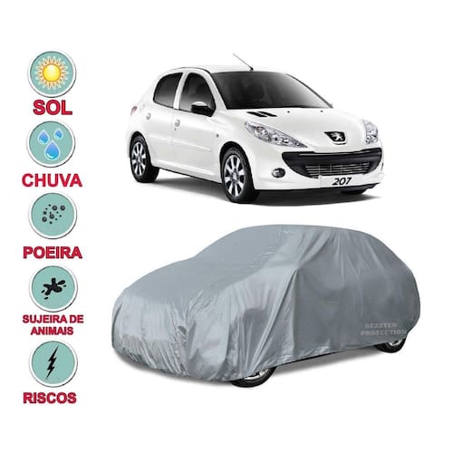 Capa cobrir carro peugeot 207 hatch impermeável proteção chegou a hora de proteger seu carro com a nova capa bezzter protection - pro. A capa é 100% impermeável, desenvolvida exclusivamente para proteção do seu automóvel, com material em plástico polietileno com aditivo anti - uv, protegendo seu carro de sol, chuva, riscos, poeiras, dejetos de animais. A capa automotiva bezzter protection - pro é 100% impermeável é fabricada polietileno que ajuda a manter a qualidade e durabilidade do seu veículo protegendo de qualquer chuva, sujeira, sol ou poeira externa. Capa no tamanho adequado ao carro que está no título do anuncio só compre se o seu carro for o do título do anuncio e foto duvidas pergunte. Benefícios e descrição da capa: