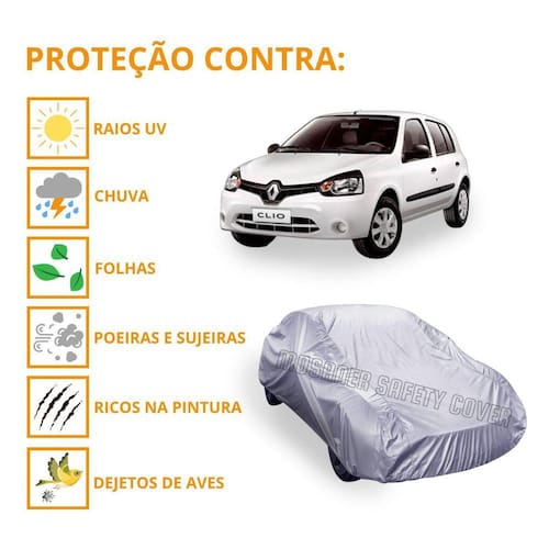 A capa de cobrir renault clio hatch mosaner safety cover possui ótima qualidade que proteje seu veículo de diversas formas, como contra chuvas, sujeira, poeira, sereno, dejetos de aves, seiva e resíduos de árvores como folhas, fuligem, maresia, poluentes, respingos de tinta, arranhões superficiais e raios solares.