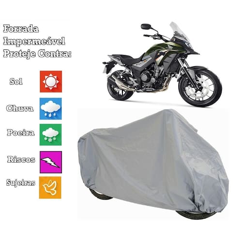 Capa cobrir moto honda cb 500x 100 % impermeável e 100% forrada proteja sua moto com a nova capa bezzter protection. A capa é forrada com tecido e impermeável, desenvolvida exclusivamente para proteção do seu automóvel, protegendo seu carro de sol, chuva, riscos, poeiras, dejetos de animais. A capa motocicletas impermeável é fabricada polietileno que ajuda a manter a qualidade e durabilidade do seu veículo protegendo de qualquer chuva, sujeira ou poeira externa. Capa no tamanho adequado a moto que está no título do anuncio. Benefícios e descrição da capa: