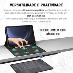 Capa com imã encaixe teclado para galaxy tab s9 fe 10.9 x516 Cor: preto a capa magnética com suporte ajustável oferece segurança, praticidade e organização para você trabalhar, estudar ou se divertir em qualquer lugar. produzida com materiais premium, combina resistência e leveza: alta qualidade, estrutura interna rígida que absorve impactos e interior em microfibra macia, que evita riscos na tela e no corpo do tablet. além disso, cobre a frente, verso e bordas do dispositivo para garantir máxima segurança no dia a dia o slot dedicado para a caneta touch e o encaixe magnético para teclado tornam a experiência ainda mais organizada e funcional. e mais: conta com suporte ajustável para diferentes ângulos e função auto sleep/wake para economizar bateria automaticamente ao abrir ou fechar a capa. ------------------ ------------------ é compatível com quais modelos de tablet R: compatível somente com o samsung galaxy tab s9 fe 10.9 modelos sm-x516 e sm-x510 . Antes da compra, verifique o modelo do seu tablet para evitar incompatibilidade. o suporte é firme Dá para usar em várias posições R: sim a capa possui suporte ajustável, permitindo diferentes ângulos para digitar, desenhar ou assistir vídeos com estabilidade e conforto. a capa cobre também as bordas do tablet R: sim. Ela cobre e protege frente, verso e bordas, proporcionando proteção completa para o seu dispositivo. o teclado e a caneta estão inclusos R: não. Este anúncio refere-se apenas à capa. O teclado e a caneta são vendidos separadamente. posso usar um teclado bluetooth com essa capa R: sim se você preferir, pode usar qualquer teclado bluetooth com ou sem ímã junto com a capa, sem problema algum. ------------------ Especificações ------------------ Material de alta resistência Fácil de limpar Interior de microfibras Encaixe para caneta Altura: 19 cm Largura: 26 cm Capa aberta: 45 cm Compatibilidade: samsung galaxy tab s9 fe 10.9 modelos sm-x516 e sm-x510 ------------------ Conteúdo ------------------ 1x capa magnética Anúncio referente a capa Acessórios que ambientam as fotos não inclusos. ------------------ Apresentação: ------------------ - qualidade garantida. - atendimento qualificado. - enviamos para todo o brasil. - compra garantida. - despachamos em até 1 dia útil após confirmação do pagamento Garantimos a devolução por arrependimento em até 7 dias, após o recebimento e de 15 dias contra defeitos de fabricação. Marca: Não Informado