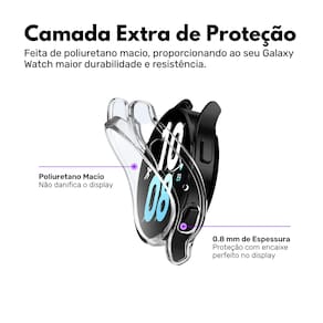 Capa com película de vidro integrada para proteção total do Samsung Galaxy Watch 7 40mm contra riscos, impactos e sujeira, mantendo a sensibilidade ao toque.Tipo
