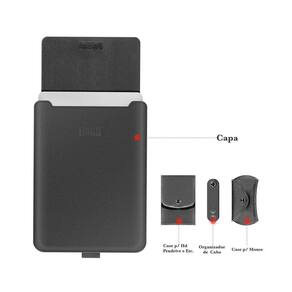 Ótima qualidade Suporte inteligente para NoteBook que permite que você trabalhe em seu computador no ângulo mais ergonomicamente confortável com um Mouse Pad embutido prático. Alta qualidade Produzida em couro pu de alto padrão muito durável à prova d'água. Organize todos os seus acessórios O pacote inclui: 1 x Capa para Samsung 1 x bolsa de mouse 1 x bolsa de Hd, pendriver, carregador e etc. Produto de material sintético; 13.5 - 24.5cm x 33,5cm Marca: Não Informado