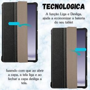 como funciona o recurso de auto slep da capa magnética R: a capa possui um sensor magnético embutido que, ao ser fechado, coloca automaticamente o tablet em modo de suspensão, economizando energia e prolongando a vida útil da bateria. Ao abrir a capa, o tablet retorna instantaneamente ao estado de funcionamento normal.