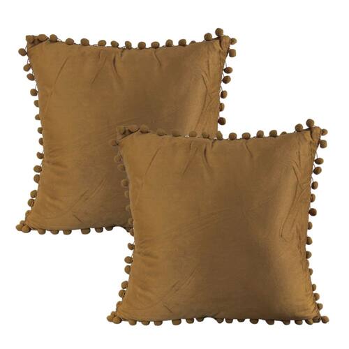 Capa para almofada com design de veludo Os pompons com franjas medem 45 x 45 cm. O pacote de café inclui apenas 2 fundos. Capa de almofada para veludo com pompons de franja, ideal para decorar sua sala de estar, quarto, terraço, etc., de forma rápida, simples e econômica.