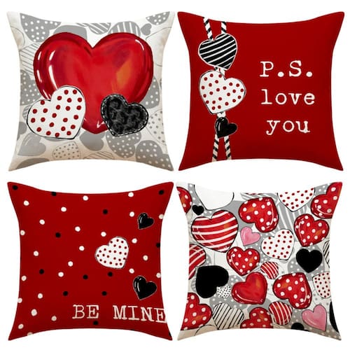 Material: linho Peso: 600 g Tamanho: 45 × 45 cm Design de coração romântico: apresenta um design de coração vibrante e divertido com frases como “BE MINE” e “P.S. love you”, perfeito para criar uma atmosfera romântica em sua casa. Material de linho premium: feita de tecido de linho de alta qualidade, esta capa de travesseiro é macia, durável e confortável, ideal para o uso diário. Perfeita para o Dia dos Namorados: com suas encantadoras estampas de coração e design com tema de amor, esta capa de almofada é uma ótima adição à sua sala de estar ou quarto para o Dia dos Namorados ou decoração durante todo o ano. Decoração versátil: adiciona um toque brilhante e alegre a qualquer sofá, cama ou cadeira, encaixando-se perfeitamente em interiores modernos e tradicionais. Fácil de manter: lavável à máquina para um cuidado sem complicações, mantendo seu travesseiro fresco e vibrante com o mínimo de esforço.
