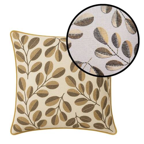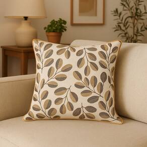 Capa de Almofada Tecido Daphne Luxo Folhagens Creme 42cm