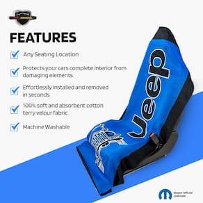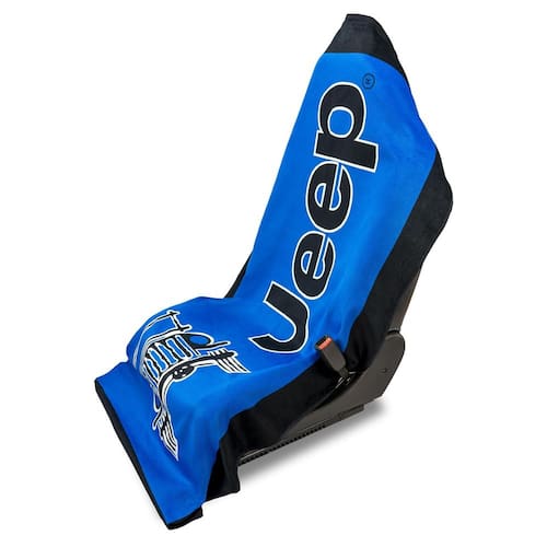 Seat Armour Toalha de assento Jeep – Toalha de assento de ajuste universal macia lavável na máquina – Fácil instalação, capa de assento multiuso Towel2Go para Jeep – Azul