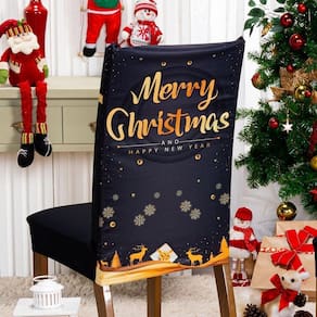 Capa De Cadeira Jantar Avulsa Estampada Ano Novo Ajustável Com Elástico - Cor Christmas Gold