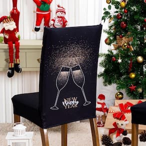 Capa De Cadeira Jantar Avulsa Estampada Ano Novo Ajustável Com Elástico - Cor Taças
