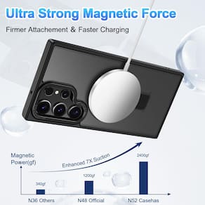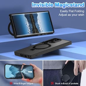 Capa?Suporte magnético invisível?Feito de alumínio de nível aeroespacial, o suporte é prático e multifuncional. Pode ser ajustada entre 40° e 120° para uma experiência de visualização estável e sem usar as mãos, e funciona como um suporte de anel para maior conveniência. Com estilo de vida N+1, pode ser utilizado para assistir TV, trabalhar em reuniões ou conversar por vídeo. - ?Modelos compatíveis? Esta capa fosca translúcida é compatível apenas com Samsung Galaxy S23 Ultra, não compatível com nenhum outro modelo de telefone. - ?Compatível com acessórios MagSafe e carregamento sem fio?Esta capa de telefone com um anel magnético integrado que se alinha perfeitamente com os carregadores MagSafe e outros carregadores com certificação Qi, oferece uma forte experiência de fixação e carregamento sem fio mais rápido. Compatível com todos os acessórios Magsafe, como um carregador magnético, suporte magnético para carro, carteira magnética, carregador magnético, etc. Carregue do seu jeito. - ?Design fosco translúcido?Parte traseira fosca translúcida avançada, restaurando a textura metálica e exibindo o logotipo do seu telefone fracamente, evita que a capa fique suja ou amarele, com uma sensação refrescante e suave. A textura fosca oferece uma melhor aderência. - ?Material premium?Feito de moldura de TPU flexível e parte traseira de policarbonato antiarranhões protege seu telefone contra choques e arranhões sem adicionar volume. - ?Suporte magnético invisível?Feito de alumínio de nível aeroespacial, o suporte é prático e multifuncional. Pode ser ajustada entre 40° e 120° para uma experiência de visualização estável e sem usar as mãos, e funciona como um suporte de anel para maior conveniência. Com estilo de vida N+1, pode ser utilizado para assistir TV, trabalhar em reuniões ou conversar por vídeo.