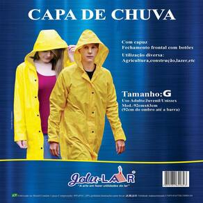 Proteção Confiança: Feita com materiais de alta qualidade, nossa capa de chuva é resistente à água e ao vento, garantindo que você fique seco(a) e confortável mesmo nas condições mais adversas. Com seu capuz ajustável e fechos de botão duráveis, você estará protegido(a) de qualquer chuva intensa.