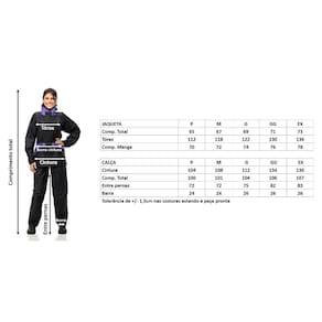Jaqueta com forro interno, bolso interno e punhos com elástico e fitas autocolantes (tiras de contato) e fechamento frontal com zíper e fitas autocolantes (tiras de contato). Refletivo nas costas. Calça com refletivo no zíper da barra.