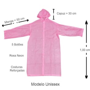 Capa de Chuva Neon Adulto Unissex: PVC Impermeável com Capuz e Botão de Pressão.