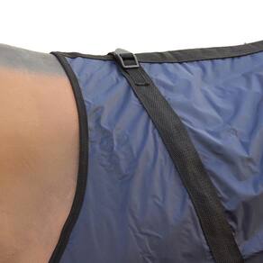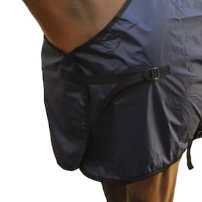 Capa de Chuva para cavalo Bronc-Steel fabricada em nylon na cor Azul Marinho. Possui correias de nylon com regulagem para fixação da capa no animal, predendo entre as pernas, na barriga e no peito. Ideal para proteger o animal em dias chuvosos.