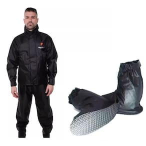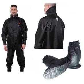 itens inclusos: 01 jaqueta sem capuz - 01 calça - par polainas marca fabricante capa de chuva: pioneira marca fabricante polainas: piracapas modelo: nylon urban descrição: - confeccionado em nylon emborrachado 0,20mm - jaqueta com fechamento através de zíper e fecho recobertos por uma lapela de drenagem - gola alta - regulador nos punhos em fecho - p refletivo nas costas. - a calça conta com elástico na cintura e regulador em fecho na bainha da calça
