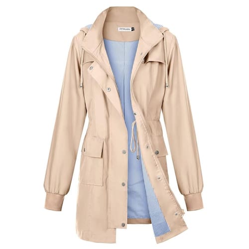Casacos de chuva femininos impermeáveis com capuz - ?Design de capa de chuva?? Cordão ajustável oculto na cintura melhora a estética do corpo ? O design moderno do forro listrado vertical faz você parecer muito magra e chique ?Dois bolsos frontais com botões garantem que os itens não caiam. ?Punhos elásticos de manga comprida e design de capuz de gola alta melhoram a resistência ao vento ?Longo o suficiente para cobrir seu quadril. O capuz removível cria 2 visuais completamente diferentes e pode ser parcialmente limpo durante o processo de limpeza para prolongar sua vida útil - ?Material da capa de chuva?Revestimento 100% poliéster e forro 100% algodão. Impermeável / leve / secagem rápida / à prova de vento / respirável / impermeável / confortável de usar. Pode ser embalado em uma pequena bolsa compacta que é fácil de ser transportada em sua mochila diária e perfeita para viagens ou uso casual, e também reduz o consumo de energia no corpo. - ?Ocasiões?O tecido de poliéster tem uma densidade maior e pode ser mantido seco a qualquer momento. Não é facilmente penetrado por chuva leve ou neve, mas não fique muito tempo na chuva forte. Este sobretudo é adequado para uso diário, acampamento, caminhada, equitação, ciclismo, escalada, piquenique, caminhadas, viagens, passear com o cachorro, assistir a jogos de bola e outras atividades e esportes ao ar livre. - ?Cuidados com as capas de chuva femininas?Lavar à mão em baixa temperatura. Recomenda-se lavar a seco. Lavar à máquina facilmente danifica o tecido impermeável. - ?Aviso sobre o tamanho? Esta capa de chuva feminina é casual e grande o suficiente, fica grande para mulheres pequenas, escolha um tamanho abaixo se você for magra. O modelo na imagem tem 175 cm e 52 kg. O tamanho dela é pequeno.