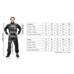 Garanta conforto e proteção com o conjunto 100% impermeável Pantaneiro de jaqueta e calça em PVC. Jaqueta com gola alta e punhos com ajustes em fitas de contato (tiras autocolantes), para facilitar durante o uso e garantir melhor vedação contra a chuva e o vento. Refletivo no peito e nas costas, proporcionando mais segurança. Fechamento frontal da jaqueta com zíper e fitas de contato (tiras autocolantes). Calça com elástico na cintura, garantindo melhor ajuste e mais conforto durante o uso.