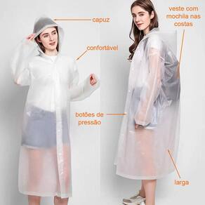 Com o capuz incluso, você estará completamente protegido da chuva, seja em passeios, eventos esportivos ou trabalhos ao ar livre. Além disso, essa capa de chuva é muito fácil de carregar, podendo ser dobrada e guardada em sua bolsa ou mochila sem ocupar muito espaço.