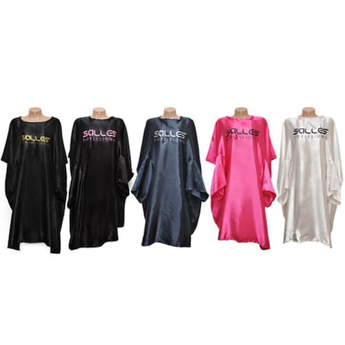 Capa de Corte de Cetim Não gruda cabelo Reforço na costura Botões de pressão Qualidade e Durabilidade. Lavagem: manter os botões da capa de corte fechados. Não utilizar alvejante à base de cloro. Separar de outras peças. Secagem: maquina de lavar utilizar temperatura mínima. Passar: ferro em média temperatura com máximo de 110.