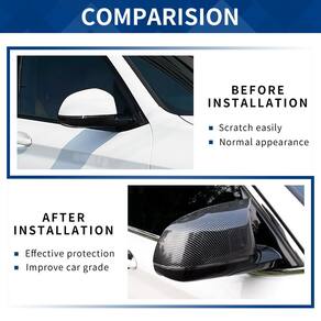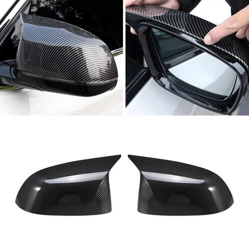 - Pacote: Um par de tampas de espelho, sem instruções. Esta opção apresenta uma tampa de espelho retrovisor feita de material plástico ABS com um padrão de fibra de carbono impresso em 3D.