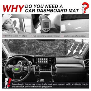 Por que escolher nosso tapete de painel? -- Ajuste personalizado para Kia Sorento 2021 2022 2023 2024 --Flanela de alta qualidade, não encolhe, desbota ou distorce. --Evita que seu painel rache, descoloração e brilho. -- Posição precisa do orifício, alinha-se quase perfeitamente. -- O design antiderrapante não o torna deslocado. --Super fácil de instalar em segundos. --Sem brilho no para-brisa. --Melhore seu interior visualmente de longe. --Experiência de condução segura e confortável. - Buscamos tapete de painel de alta qualidade e colocamos os clientes em primeiro lugar! Incluído na embalagem: 1 capa de tapete de painel. - Ajuste personalizado: Com recortes exatos para seus sensores e aberturas de painel, esta capa de painel é feita especificamente para Kia Sorento 2021 2022 2023 2024. - Protetor poderoso: proteja seu painel da exposição solar a longo prazo e raios UV, que podem levar a rachaduras, descoloração e deformação. A capa de painel Autorder pode ajudar a reduzir o brilho do sol do painel e mantê-lo com aparência de novo. Proporcionando a você uma experiência de condução confortável e segura. - Flanela premium: Nosso tapete de painel é feito de tecido de flanela de alta qualidade, que é leve e macio e resistente a distorções, desbotamento e rugas. A espessa camada de penugem preta absorve efetivamente o calor, mantendo o painel mais fresco no verão e mais quente no inverno. - Design antiderrapante: Projetado com pequenos pontos de silicone densamente na parte de trás, nosso tapete de painel para Sorento apresenta um antiderrapante que pode ser melhor antiderrapante, tornando-o antiderrapante e não deslocado. Acessórios bem feitos para o seu painel! - Fácil instalação: sem necessidade de adesivos. Basta colocar a tampa do painel diretamente no topo do painel e ela não se moverá.