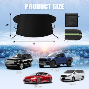 Para-brisas automotivos - Acabe com geada, gelo e raspagem de neve: diga adeus aos raspadores com a capa de neve do para-brisa Sompaty e a proteção da capa dos espelhos laterais. Projetado para combater a aderência gelada do inverno, danos causados pelo sol e arranhões, ele atua como um escudo resistente contra os elementos. Seu design à prova d'água repele a água sem esforço, eliminando rapidamente a neve e a geada. Quando estiver pronto para rolar, remova a tampa, sacuda a neve e pronto, sem complicações, apenas com facilidade - Capa magnética grande para para-brisas: medindo 111,8 cm por 190,5 cm, nossa capa de para-brisa de carro para gelo e neve cabe facilmente na maioria dos carros familiares, ideal para MPVs, sedans, caminhões e SUVs da maioria das marcas e modelos, oferecendo proteção completa para para-brisas e espelhos laterais. Com ímãs de borda, permanece seguro mesmo durante as tempestades de vento mais difíceis. Antes da compra, certifique-se de compatibilidade com o tamanho do seu carro - Materiais premium com design antifurto: Feita de tecido Oxford 600D resiliente de alta qualidade, esta capa de neve de carro é reforçada com um forro de PVC resistente às intempéries, evitando efetivamente a aderência. As abas de porta com costura dupla garantem um ajuste seguro e resistente a rasgos, garantindo que não se soltem. Basta fechar as portas internas do seu veículo para encaixar confortavelmente na capa do carro de neve, bloqueando efetivamente os elementos, protegendo contra o vento e dissuadindo potenciais ladrões - Capa de para-brisa de carro para todos os climas: Esta capa de neve de para-brisa para todas as estações oferece proteção durante todo o ano. Ele desvia o calor do verão, repele a chuva, mantém os detritos afastados no outono e isola contra geadas e neve no inverno. A última palavra em acessórios para carros de inverno, prepare-se para a chegada do clima frio e economize seu tempo todas as manhãs - Simples de instalar e armazenar: Esta capa de para-brisa de carro para gelo e neve é incrivelmente simples de instalar, sem necessidade de alças extras. Seu design dobrável permite armazenamento conveniente em seu veículo sem ocupar muito espaço. Para transporte sem esforço, inclui uma bolsa de armazenamento, garantindo fácil mobilidade e armazenamento