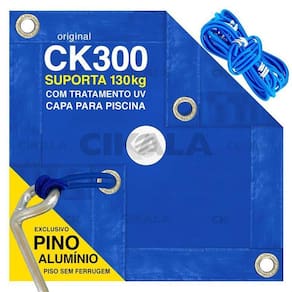 Lona capa para proteção de piscina ck300 resistente a cloro + kit de instalação1 - proteção contra sujeira externa2 - kit completo para instalação3 - anti-uv e antifúngica4 - retenção térmica5 - polietileno impermeável biodegradávelqual medida comprarCompre 50cm maior que sua piscina. Por exemplo, para uma piscina de 6x3 metros, compre a capa de piscina 6,5x3,5.Kit de instalação- buchas brancas específicas para cloro- extensores elásticos duplos de 30cm- válvula para drenar água- exclusivos pinos em alumínio de 6,5mm: mais grosso e resistente, os únicos que não enferrujam e danificam o piso da piscina. Qualidade para a vida todainstalação1 - centralize a capa na piscina e faça marcações com uma distância de 25 cm para cada lado, em relação a borda da piscina;2 - fure o chão a cada metro com uma broca tamanho 12 e insira as buchas;3 - fixe os extensores nos pinos com um nó tipo boca de lobo e prenda-os nos ilhoses da capa.Cuidados e garantiaÉ primoridal que tenha água por baixo da capa, a uma distância mínima de aproximadamente 20cm ou dois palmos.A não utilização do dreno torna obrigatório o uso de flutuadores por baixo da capa. A garantia não cobre rasgos ou soltura de ilhoses causados por acúmulo de água sobre a capa.O excesso de produtos químicos danifica a capa, causando ressecamento e afetando sua vida útil. A garantia não cobre defeitos causados por excesso de produtos químicos.Em caso da necessidade de tratamento de choque com cloro, remova completamente a capa, retomando seu uso somente após a estabilização do nível ideal do cloro 1,0 a 3,0 ppm , ou aguardar 3 horas para cobrir a piscina.Ao aparecer sinais de deterioração, inutilize o produto.- garantia de 30 dias contra defeitos de fabricação.Garantia não cobre mal uso e/ou fatores naturaisConsulte-nos antes de retirar ou solicitar a coleta do pedido Ean: 7908065497878