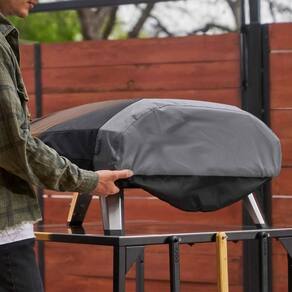 Seu ajuste personalizado garante que os mostradores de controle e o hub de temperatura permaneçam protegidos enquanto os botões puxam o tecido firmemente ao redor do forno. E para um pequeno truque de organização, uma bolsa traseira oferece armazenamento prático para a mangueira e o regulador, ou pode ser dobrada para abrigar a própria tampa quando o forno estiver em uso.