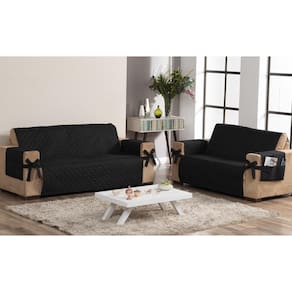 Capa protetora de sofá 2 e 3 lugares com porta controle e laço preto Protetor de sofá 2 e 3 lugares face única com laço o kit capa para sofá é feito para diversos tipos de sofá, é ideal para você decorar a sua sala para que você receba sua visita em um ambiente mais bonito e agradável, além de proteger o seu sofá de manchas, sujeiras e outro tipo de dano que possa ser causado com o tempo. contém: 01 protetor de sofá para 2 lugares 1,90m x 1,10m.01 protetor de sofá para 3 lugares 1,90m x 1,50m.Medida dos 4 protetores para braço: 0,75cm x 0,48cm composição: tecido: 100% poliéster enchimento: 100% poliéster forro: tnt gramatura 20 detalhe do laço: todo matelado fabricação própria