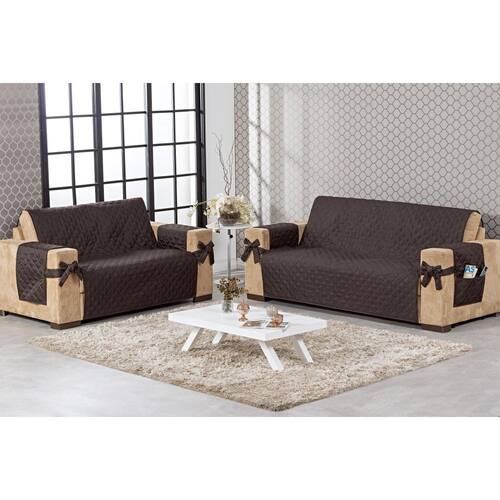 Protetor de sofá 2 e 3 lugares face única com laço O kit capa para sofá é feito para diversos tipos de sofá, é ideal para você decorar a sua sala para que você receba sua visita em um ambiente mais bonito e agradável, além de proteger o seu sofá de manchas, sujeiras e outro tipo de dano que possa ser causado com o tempo. Contém: 01 protetor de sofá para 2 lugares 1,90m x 1,00m. 01 protetor de sofá para 3 lugares 1,90m x 1,50m. Medida dos 4 protetores para braço: 0,75cm x 0,48cm Composição: Tecido: 100% poliéster Enchimento: 100% poliéster Forro: tnt gramatura 20 Cor: Marrom Detalhe do laço: todo matelado Fabricação própria Marca: Não Informado Ean: 7785228514111