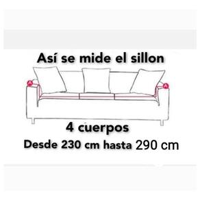 Use a capa de sofá de tecido elástico texturizado CUADRILLE, para um silão GRANDE de 3 corpos medindo entre 230 cm e 290 cm, com uma altura de 90 cm. Esta capa de 4 corpos é ideal para essa medida... Você precisa medir o Sillon de acordo com a imagem publicada. Esta capa é de excelente qualidade e fácil de lavar. Ideal para proteger seu sofá e renovar sua aparência, sem a necessidade de estofar... Grande variedade de cores