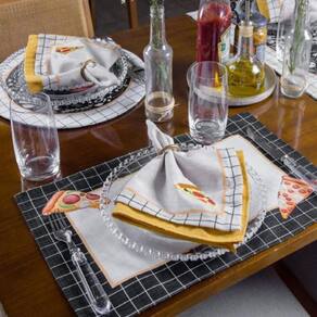 Capa de Sousplat Pizza 534222 2Und 35cm Belchior ATENÇÃO: As cores dos produtos podem sofrer variações em função das características do monitor e do ambiente durante sua visualização. As capas para sousplat são produzidas em tecido durand, uma tecnologia que proporciona riqueza de detalhes na estampa e visual elegante, além da durabilidade e resistência a altas temperaturas.