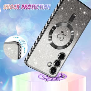 ?Capa com glitter magnético com coração de amor? Os padrões luxuosos galvanizados de brilho de coração do amor, capa transparente com glitter gardient para que os brilhos nunca desbotem ou descamem e permaneçam sempre brilhantes. A capa magnética tem um estilo único e especial. ?Suporte Magsafe Magnetic Design? O design de anel de sucção magnético forte integrado não apenas fica bonito, mas também suporta Magsafe e carregamento sem fio. ?Proteção total do corpo? A cobertura total da câmera e o protetor de lente da câmera integrado fornecem proteção abrangente para o seu telefone; a borda elevada suficiente protege as lentes da tela frontal de tocar uma superfície quando colocadas para baixo; os cantos amortecedores à prova de choque podem proteger seu telefone contra quedas e rachaduras diárias. ?Aderência confortável? O design transparente torna a capa do telefone mais confortável de segurar, sem escorregar ou desconforto. Além disso, as bordas da capa do telefone são cuidadosamente trabalhadas para evitar qualquer pressão ou desconforto em sua mão. - ?Modelos compatíveis?Especialmente compatível apenas com Samsung Galaxy S24, não é compatível com nenhum outro modelo de telefone. Confirme se o modelo do seu telefone é Samsung Galaxy S24 antes de comprar. Muitas cores para você escolher. - ?Capa com glitter magnético com coração amoroso? Padrões luxuosos galvanizados de brilho de coração de amor, capa transparente com glitter para que os glitters nunca desbotem ou descamem e permaneçam sempre brilhantes. A capa magnética tem um estilo único e especial. - ?Suporte Magsafe Design Magsafe?O design de anel de sucção magnético forte integrado não apenas fica bonito, mas também suporta Magsafe e carregamento sem fio. - ?Proteção total do corpo?A cobertura total da câmera e o protetor de lente da câmera integrado fornecem proteção abrangente para o seu telefone; a borda elevada suficiente protege as lentes da tela frontal de tocar uma superfície quando colocadas para baixo; os cantos à prova de choque protegem seu telefone contra quedas e rachaduras diárias. - ?Aderência confortável?O design transparente torna a capa do telefone mais confortável de segurar, sem escorregar ou desconforto. Além disso, as bordas da capa do telefone são cuidadosamente trabalhadas para evitar qualquer pressão ou desconforto em sua mão.