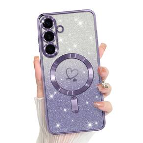 Capa com glitter, suporte magnético Magsafe, proteção da câmera e bordas elevadas.Acabamento do material