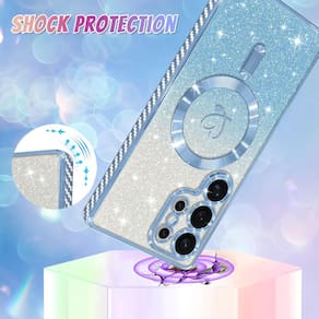Capa com glitter magnético, proteção da câmera e suporte Magsafe.Acabamento do material