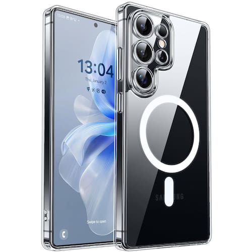 CapaCANSHN Cobertura total projetada para Samsung Galaxy S25 Ultra (2025) [proteção total da câmera] [compatível com Magsafe], transparente - Ajuste perfeito e serviço confiável: projetada especificamente para o Samsung Galaxy S25 Ultra, esta capa se encaixa perfeitamente em cada curva, botão e recorte, garantindo um ajuste perfeito e desempenho confiável - Proteção aprimorada da câmera: a capa oferece cobertura total para a câmera com uma borda elevada de 2,5 mm ao redor da lente, oferecendo proteção abrangente sem comprometer a qualidade da foto - Conectividade magnética potente: compatível com carregadores sem fio MagSafe e Qi, esta capa se fixa com segurança a acessórios magnéticos como carteiras e suportes de carro, garantindo uma conexão estável mesmo durante a rotação ou movimento - Transparente e antiamarelamento: feita de TPU e PC de alta qualidade, esta capa mostra a beleza autêntico do seu telefone. O revestimento nano antioxidante resiste a 99,9% do amarelamento causado por raios UV e suor - Resistência superior a quedas: construída a partir de material TPU espesso e à prova de choque, a capa aumenta a resistência a quedas. Cada canto possui almofadas de ar que absorvem impactos para maior proteção