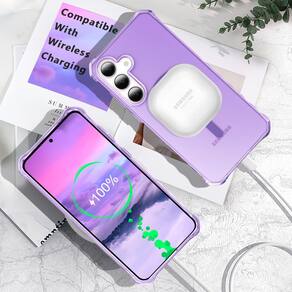 CapaCaselovely Capa magnética para Samsung Galaxy S25 [proteção contra quedas de grau militar] [Forma da moldura ondulada] Capa fina fosca para S25 de 6,2 polegadas, roxa - [Toque aveludado e borda ondulada] A capa para Samsung Galaxy S25 é feita com TPE e TPU de ponta, incorporando um novo revestimento aveludado. A parte traseira translúcida revela e até melhora a beleza autêntico do seu telefone. E a parte traseira de policarbonato e as bordas de borracha flexíveis trazem mais boa aderência à capa de celular que você usa. - [Super Absorção Magnética] Com ímã poderoso integrado, esta capa de celular para Samsung S25 é compatível com a maioria dos acessórios, como carregadores sem fio, suportes magnéticos para carros, bateria magnética, carteira magnética e assim por diante. O poderoso ímã se encaixa perfeitamente com o Samsung Galaxy S25, proporcionando uma experiência mágica de fixação e carregamento sem fio mais rápido, e não cai facilmente. - [Proteção de grau militar certificada] A capa para celular Samsung Galaxy S25 garante a segurança do telefone através de várias estruturas de amortecimento, incluindo silicone macio e resistente, airbags internos à prova de choque, proteção total da lente da câmera e parte traseira rígida do PC, permitindo suportar mais de 5.000 quedas de alturas de 2,5 m. As bordas elevadas de 1,2 mm e 1,5 mm evitam que a câmera e a tela sejam arranhadas. Evita reparos caros e alcança um equilíbrio ideal entre estilo e proteção. - [Ajuste confortável e detalhes precisos] Todos os botões e recortes da capa fina para Samsung S25 se alinham perfeitamente com o telefone e não adicionam volume desnecessário. A abertura precisa da lente da câmera não apenas protege com precisão as lentes caras, mas também não afeta a clareza da foto. O design ergonômico exclusivo para botões faz você se sentir muito mais fácil de pressionar com uma sensação sólida de clique e um bom feedback. - [Compatibilidade] Esta capa serve para Samsung Galaxy S25. Se tiver problemas, através do Centro de mensagens da Amazon