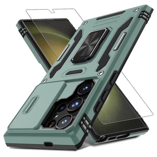 Capas para Samsung Galaxy S25 Ultra. O pacote inclui: 1 capa para celular Galaxy S25 Ultra, 1 protetor de tela para Galaxy S25 Ultra, 1 kit de limpeza Característica: 1. A capa S25 Ultra é a opção exclusiva para você. Certificada pelo padrão militar 2. A capa deslizante também pode proteger a lente, esta capa possui duas barras de proteção de aço inoxidável na parte traseira para evitar danos externos e resultando em peeling de tinta 3 A capa de celular para S25 Ultra fina com a capa deslizante da câmera; ela se combina para dar a você a proteção mais abrangente para o seu dispositivo caro - Capa protetora com capa deslizante para câmera especialmente projetada para Samsung Galaxy S25 Ultra de 6,9 polegadas (lançado em 2025). Não serve para outro dispositivo! O recorte preciso se encaixa em cada botão, câmera, alto-falantes e portas com precisão, fácil de pressionar e acessar - Proteção de nível militar: capa à prova de choque de camada dupla feita de TPU + PC. Esta estrutura de almofada multicamadas fornece proteção adicional de absorção de choque. Certificado pelo padrão militar, sobreviveu a mais de 8.000 testes de queda de até 2,5 m! O interior de TPU flexível absorve impactos internos. Além disso, o exterior com quatro cantos reforçados pode absorver efetivamente o impacto da queda - Proteção para câmera e tela: a capa deslizante da câmera protege a lente da câmera da capa do telefone contra arranhões e arranhões. As bordas da tela de 1,8 mm sutilmente aprimoradas e a película de vidro fornecem proteção extra e abrangente. Garanta que todos os aspectos do seu telefone estejam protegidos exclusivamente com - Suporte de anel magnético: capa multifuncional recentemente atualizada, suporte de anel integrado e patch de metal. O anel giratório oferece dois modos de suporte para visualização horizontal vertical, para que possa ser utilizado como suporte de anel e soltar sua mão ao assistir a vídeos. O patch de metal se prende facilmente ao suporte magnético do carro, muito conveniente durante o tempo de condução para navegação. Você vai adorar como é conveniente com funções tão poderosas - O que você recebe: o pacote vem com 1 capa de celular e 1 pacote de protetor de tela de vidro temperado. Aviso: Devido ao anel de metal na parte de trás, esta capa NÃO funcionará com função de carregamento sem fio.