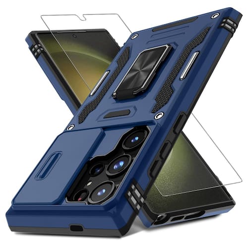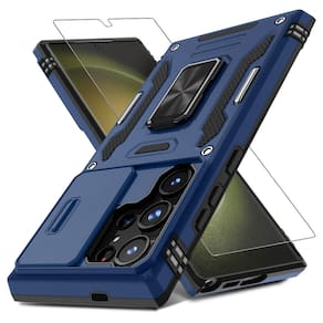 Capas para Samsung Galaxy S25 Ultra. O pacote inclui: 1 capa para celular Galaxy S25 Ultra, 1 protetor de tela para Galaxy S25 Ultra, 1 kit de limpeza Característica: 1. A capa S25 Ultra é a opção exclusiva para você. Certificada pelo padrão militar 2. A capa deslizante também pode proteger a lente, esta capa possui duas barras de proteção de aço inoxidável na parte traseira para evitar danos externos e resultando em peeling de tinta 3 A capa de celular para S25 Ultra fina com a capa deslizante da câmera; ela se combina para dar a você a proteção mais abrangente para o seu dispositivo caro - Capa protetora com capa deslizante para câmera especialmente projetada para Samsung Galaxy S25 Ultra de 6,9 polegadas (lançado em 2025). Não serve para outro dispositivo! O recorte preciso se encaixa em cada botão, câmera, alto-falantes e portas com precisão, fácil de pressionar e acessar - Proteção de nível militar: capa à prova de choque de camada dupla feita de TPU + PC. Esta estrutura de almofada multicamadas fornece proteção adicional de absorção de choque. Certificado pelo padrão militar, sobreviveu a mais de 8.000 testes de queda de até 2,5 m! O interior de TPU flexível absorve impactos internos. Além disso, o exterior com quatro cantos reforçados pode absorver efetivamente o impacto da queda - Proteção para câmera e tela: a capa deslizante da câmera protege a lente da câmera da capa do telefone contra arranhões e arranhões. As bordas da tela de 1,8 mm sutilmente aprimoradas e a película de vidro fornecem proteção extra e abrangente. Garanta que todos os aspectos do seu telefone estejam protegidos exclusivamente com - Suporte de anel magnético: capa multifuncional recentemente atualizada, suporte de anel integrado e patch de metal. O anel giratório oferece dois modos de suporte para visualização horizontal vertical, para que possa ser utilizado como suporte de anel e soltar sua mão ao assistir a vídeos. O patch de metal se prende facilmente ao suporte magnético do carro, muito conveniente durante o tempo de condução para navegação. Você vai adorar como é conveniente com funções tão poderosas - O que você recebe: o pacote vem com 1 capa de celular e 1 pacote de protetor de tela de vidro temperado. Aviso: Devido ao anel de metal na parte de trás, esta capa NÃO funcionará com função de carregamento sem fio.