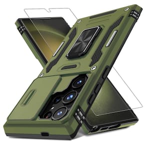 Capas para Samsung Galaxy S25 Ultra. O pacote inclui: 1 capa para celular Galaxy S25 Ultra, 1 protetor de tela para Galaxy S25 Ultra, 1 kit de limpeza Característica: 1. A capa S25 Ultra é a opção exclusiva para você. Certificada pelo padrão militar 2. A capa deslizante também pode proteger a lente, esta capa possui duas barras de proteção de aço inoxidável na parte traseira para evitar danos externos e resultando em peeling de tinta 3 A capa de celular para S25 Ultra fina com a capa deslizante da câmera; ela se combina para dar a você a proteção mais abrangente para o seu dispositivo caro - Capa protetora com capa deslizante para câmera especialmente projetada para Samsung Galaxy S25 Ultra de 6,9 polegadas (lançado em 2025). Não serve para outro dispositivo! O recorte preciso se encaixa em cada botão, câmera, alto-falantes e portas com precisão, fácil de pressionar e acessar - Proteção de nível militar: capa à prova de choque de camada dupla feita de TPU + PC. Esta estrutura de almofada multicamadas fornece proteção adicional de absorção de choque. Certificado pelo padrão militar, sobreviveu a mais de 8.000 testes de queda de até 2,5 m! O interior de TPU flexível absorve impactos internos. Além disso, o exterior com quatro cantos reforçados pode absorver efetivamente o impacto da queda - Proteção para câmera e tela: a capa deslizante da câmera protege a lente da câmera da capa do telefone contra arranhões e arranhões. As bordas da tela de 1,8 mm sutilmente aprimoradas e a película de vidro fornecem proteção extra e abrangente. Garanta que todos os aspectos do seu telefone estejam protegidos exclusivamente com - Suporte de anel magnético: capa multifuncional recentemente atualizada, suporte de anel integrado e patch de metal. O anel giratório oferece dois modos de suporte para visualização horizontal vertical, para que possa ser utilizado como suporte de anel e soltar sua mão ao assistir a vídeos. O patch de metal se prende facilmente ao suporte magnético do carro, muito conveniente durante o tempo de condução para navegação. Você vai adorar como é conveniente com funções tão poderosas - O que você recebe: o pacote vem com 1 capa de celular e 1 pacote de protetor de tela de vidro temperado. Aviso: Devido ao anel de metal na parte de trás, esta capa NÃO funcionará com função de carregamento sem fio.