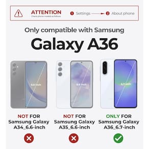 - ?Recortes precisos e fácil acesso?Projetada especificamente para o telefone Samsung Galaxy A36 5G, a capa se encaixa perfeitamente e permite fácil acesso a todas as portas, botões e funções da câmera. Nós nos concentramos em fornecer produtos de qualidade e bom serviço. Se você tiver alguma dúvida, sinta-se à vontade para entrar em contato conosco, responderemos e resolveremos seu problema dentro de 24 horas.