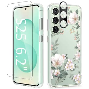 GVIEWIN Compatível com Samsung Galaxy S25 - Compatibilidade: Esta capa é compatível apenas com Samsung Galaxy S25 (6,2 polegadas, versão 2025). Verifique o modelo do seu telefone antes de fazer o pedido (consulte a imagem 2). O pacote inclui 1 capa de telefone e 1 protetor de tela e 1 protetor de lente de câmera. Aviso: não compatível com S25+ - Proteção à prova de choque de grau militar: composta de parte traseira rígida de policarbonato e borda macia de TPU, a capa é construída com quatro cantos salientes que absorvem efetivamente o choque em quedas acidentais e batidas. As molduras elevadas protegem a tela e a colisão da câmera contra arranhões e fricção diários. O protetor de vidro de dureza 9H incluído dá mais segurança para o seu novo telefone - Estampa floral chique e não amarela: com um design floral elegante, esta capa transparente combina elegância com funcionalidade. Feita de materiais transparentes e anti-amarelamento, resiste à gordura e à descoloração ao longo do tempo, garantindo que seu telefone permaneça fresco e atraente para uso a longo prazo - Recortes Precis e leve: fácil acesso a alto-falantes, botões, sensores, câmeras e outros recursos, e os botões laterais são responsivos e clicáveis; o design fino e leve oferece uma aderência confortável e cabe facilmente no seu bolso, tornando-o perfeito para uso em movimento - Suporte confiável e garantia de serviço: esta capa suporta carregamento sem fio, suporte para carro e suporte de anel de celular; Se houver algum problema com o produto, como um modelo de telefone incompatível, não hesite em entrar em contato conosco pelo Centro de mensagens da Amazon