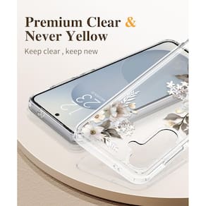 GVIEWIN Compatível com Samsung Galaxy S25 - Compatibilidade: Esta capa é compatível apenas com Samsung Galaxy S25 (6,2 polegadas, versão 2025). Verifique o modelo do seu telefone antes de fazer o pedido (consulte a imagem 2). O pacote inclui 1 capa de telefone e 1 protetor de tela e 1 protetor de lente de câmera. Aviso: não compatível com S25+ - Proteção à prova de choque de grau militar: composta de parte traseira rígida de policarbonato e borda macia de TPU, a capa é construída com quatro cantos salientes que absorvem efetivamente o choque em quedas acidentais e batidas. As molduras elevadas protegem a tela e a colisão da câmera contra arranhões e fricção diários. O protetor de vidro de dureza 9H incluído dá mais segurança para o seu novo telefone - Estampa floral chique e não amarela: com um design floral elegante, esta capa transparente combina elegância com funcionalidade. Feita de materiais transparentes e anti-amarelamento, resiste à gordura e à descoloração ao longo do tempo, garantindo que seu telefone permaneça fresco e atraente para uso a longo prazo - Recortes Precis e leve: fácil acesso a alto-falantes, botões, sensores, câmeras e outros recursos, e os botões laterais são responsivos e clicáveis; o design fino e leve oferece uma aderência confortável e cabe facilmente no seu bolso, tornando-o perfeito para uso em movimento - Suporte confiável e garantia de serviço: esta capa suporta carregamento sem fio, suporte para carro e suporte de anel de celular; Se houver algum problema com o produto, como um modelo de telefone incompatível, não hesite em entrar em contato conosco pelo Centro de mensagens da Amazon