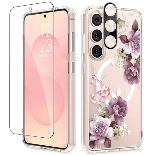 CapaGVIEWIN Capa para Samsung Galaxy S25 Plus compatível com MagSafe, com protetor de tela e protetor de lente de câmera, floral, transparente, rígida, à prova de choque, capa de telefone feminina para S25 Plus de 6,7 polegadas (flores de cerejeira) - Compatibilidade: esta capa é compatível apenas com Samsung Galaxy S25 Plus (6,7 polegadas, versão 2025); alinhamento preciso permite fácil acesso aos botões, alto-falantes e porta de carregamento; o pacote inclui uma capa floral transparente, 1 película de vidro temperado, 1 protetor de lente; confirme o modelo antes de fazer o pedido (veja a imagem 2) - Forte potência magnética: os ímãs poderosos integrados fornecem uma fixação segura com 1500 g de força, garantindo carregamento sem fio rápido e estável; Desfrute de um acessório magnético seguro e sem esforço que é perfeitamente compatível com acessórios MagSafe, como carregadores magnéticos, suportes de carro, carteiras, etc - Padrões florais claros e chiques: a capa apresenta estampas florais elegantes que dão ao seu telefone uma aparência única e atraente; o design transparente mostra a beleza autêntico do seu dispositivo; Criado com tecnologia de impressão avançada, o padrão permanece vibrante e resistente ao desbotamento ao longo do tempo - Proteção de nível militar 3 em 1 de 360°: composta por uma parte traseira rígida de policarbonato e uma moldura de TPU macio, esta capa absorve choques e resiste a quedas de até 3 metros; as molduras elevadas protegem a tela e a lente da câmera de arranhões; inclui um protetor de tela de vidro temperado 9H e um protetor de lente de câmera para fornecer proteção abrangente para o seu telefone - Durabilidade e suporte confiável: o material premium oferece resistência ao amarelamento, garantindo transparência duradoura; Para quaisquer problemas, como incompatibilidade de modelo ou expectativas não atendidas, pelo Centro de mensagens da Amazon para assistência imediata
